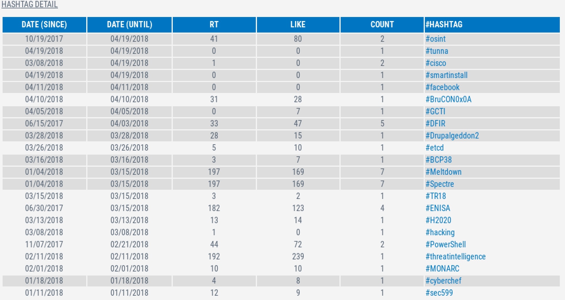 Another tool that I recently discovered is Tinfoleak. Tinfoleak is build for Twitter intelligence analysis and provides you with an HTML file output.
